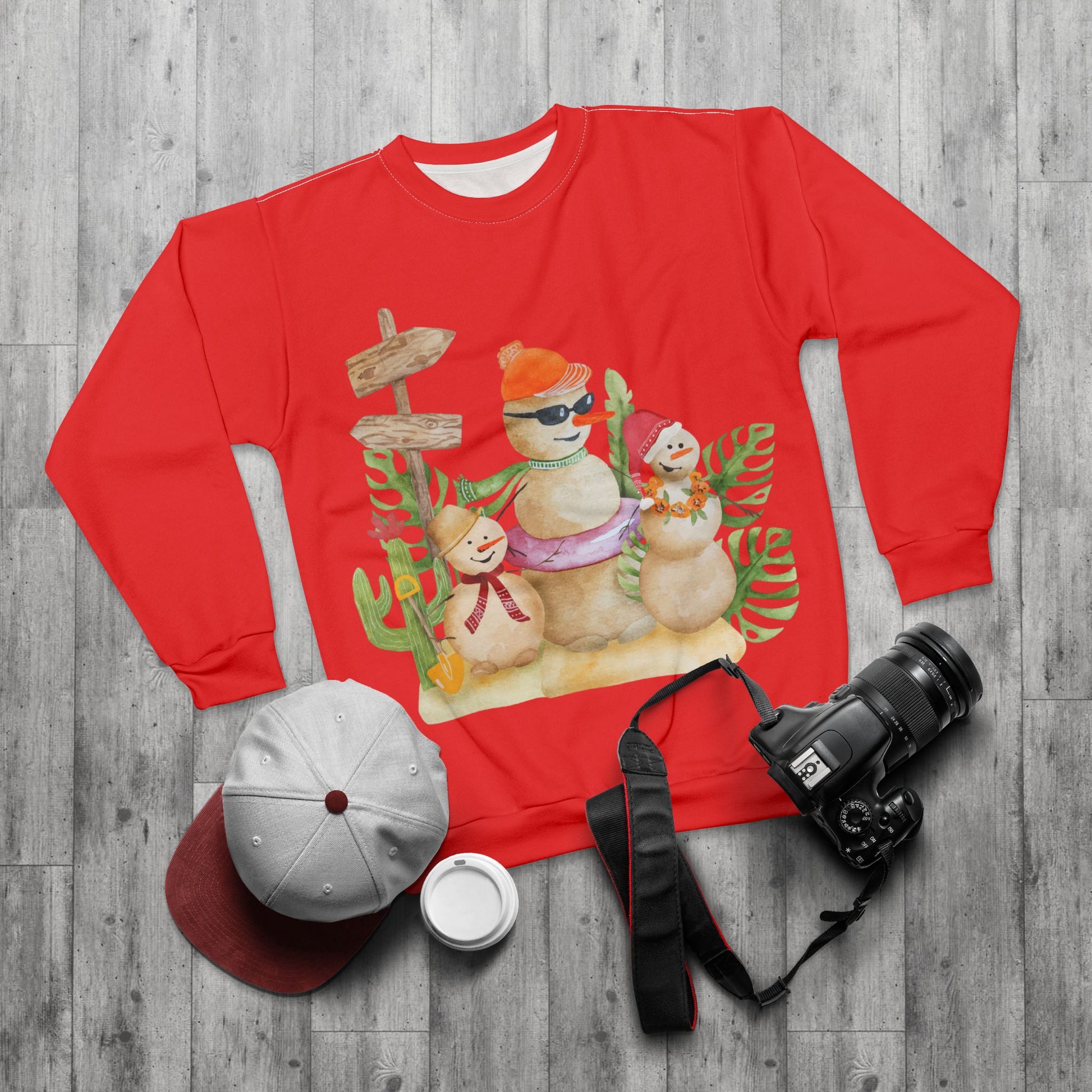 This Christmas Cool Snowmen Sweatshirt features a full decoration with bright and intense colors of snowmen design. Made of 100% Polyester, the sweatshirt is medium weight and has ribbed-knit cuffs and collar for shape retention. Perfect for those who love festive and fun holiday apparel, this sweatshirt is great for Christmas celebrations and winter festivities.