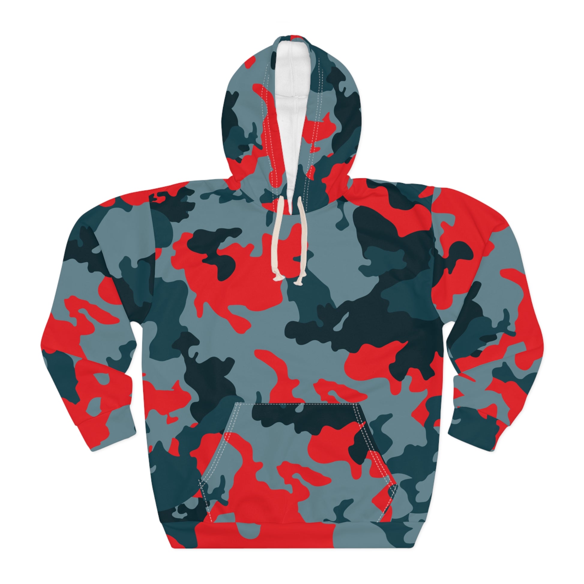 Stay cozy and stylish with this intense camo-patterned pullover hoodie. Designed for warmth and comfort, this all-over print hoodie features a bold, eye-catching camouflage design that stands out. Made from 100% polyester, it offers a medium-weight fabric that’s both durable and soft against the skin.