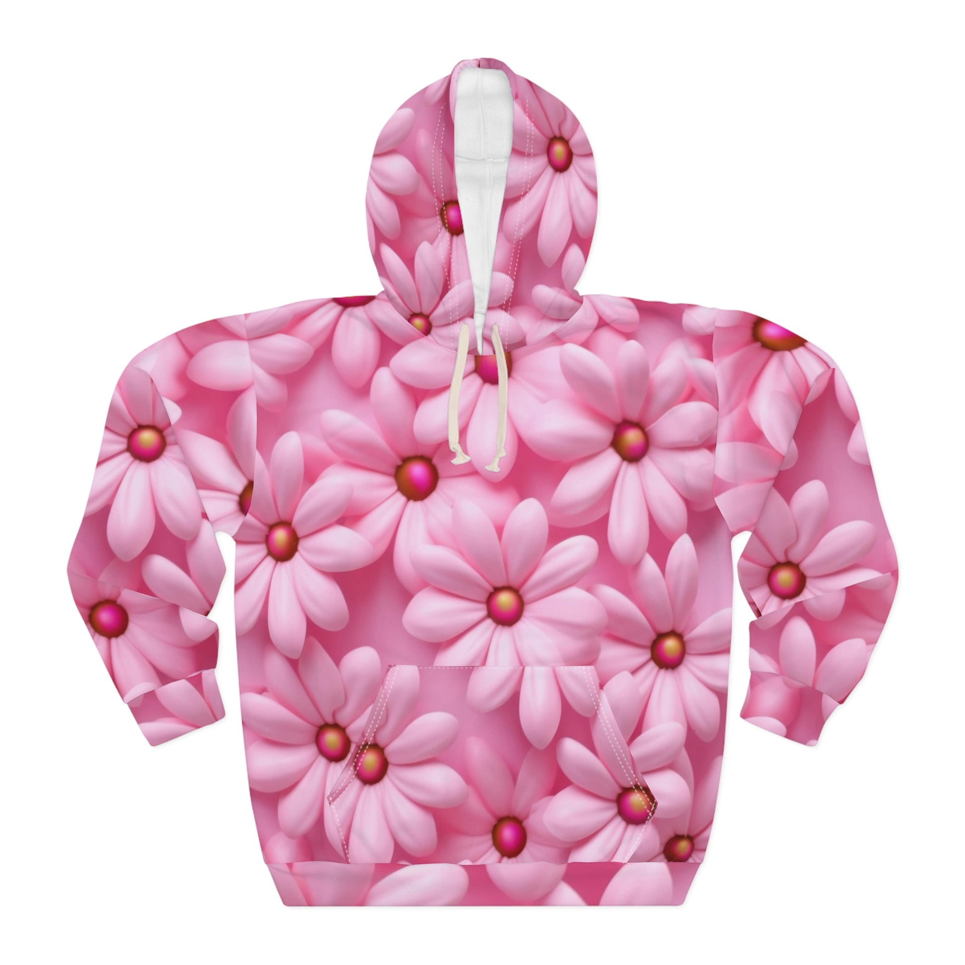 This Pink Flowers Hoodie features a full decoration with bright and intense colors, a spacious kangaroo pocket to keep your hands warm, and an adjustable hood with a drawstring. Made of 100% polyester, this medium weight fabric hoodie is perfect for those who love floral designs and want to stay cozy and stylish during colder months. Ideal for flower enthusiasts, nature lovers, and anyone looking to add a pop of color to their wardrobe. Perfect for spring and summer celebrations.