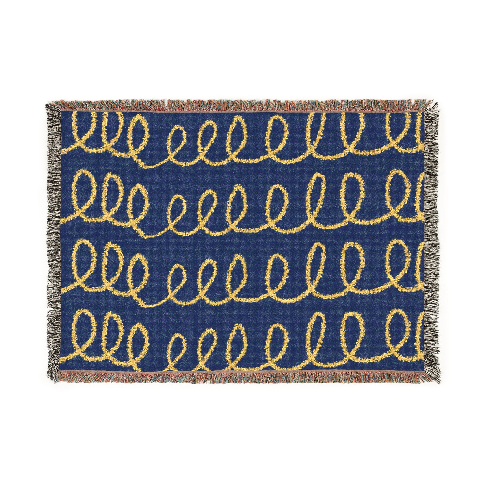 Cozy and stylish woven blanket with a unique squiggle design. Perfect for adding a touch of warmth and personality to any room. Ideal for those who appreciate modern and artistic home decor. Great for gifting during holidays, birthdays, or housewarmings.