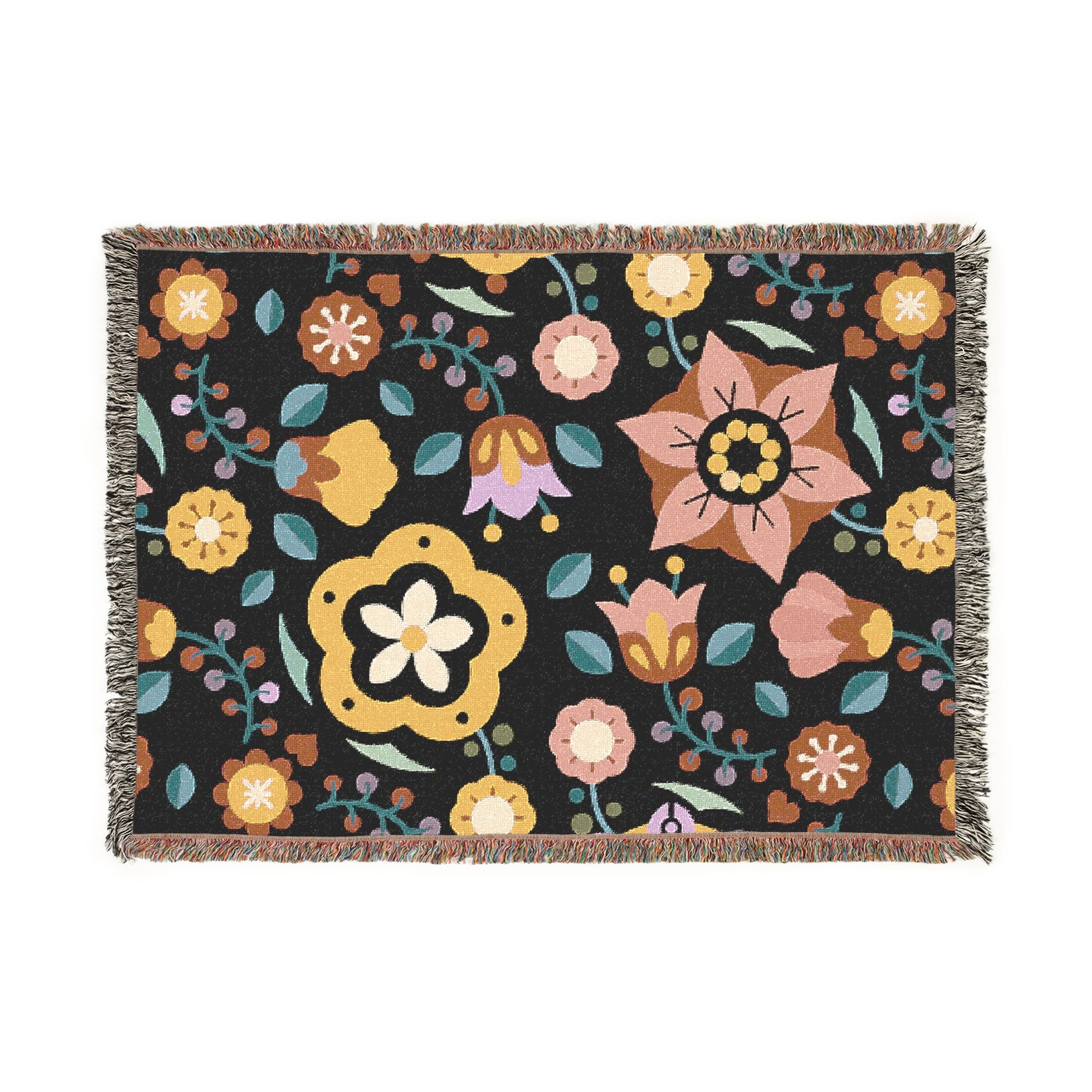 Symphony Flower design woven blanket, giving a cozy and artistic touch to your home decor. Perfect for floral lovers and those who appreciate intricate patterns. Ideal for adding warmth and style to any room, great for personal use or as a thoughtful gift. Relevant for holidays like Mother's Day, birthdays, or housewarming parties.